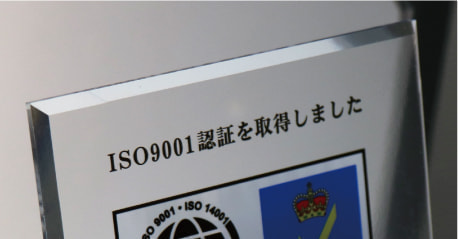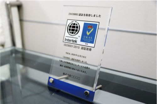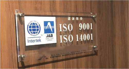 特に弊社ではISOの認定証プレートの実績がございます。壁に掛けるタイプの大きな看板、机に置くタイプの小さな看板など、様々なサイズにも対応しております。