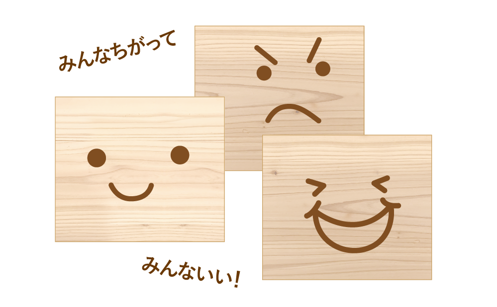 木目にかかる部位は木の特性上、印字にムラが生じます。特に杉は木目が濃く文字が薄くなります。木の風合いの良さでもあり、不良品ではありません。予めご了承ください。