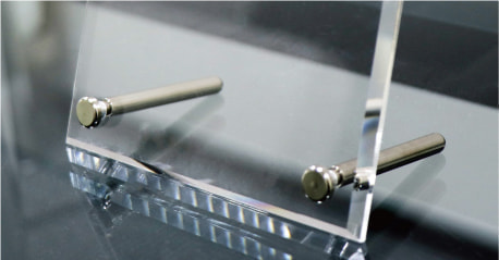 エッジを斜めにカットする面取り加工によって、絶妙なアクセントを生み、厚みのあるアクリル板を使用することで、どの角度から見ても”美しい輝き”を放つ透明感と”ハイグレード”な雰囲気を演出します。