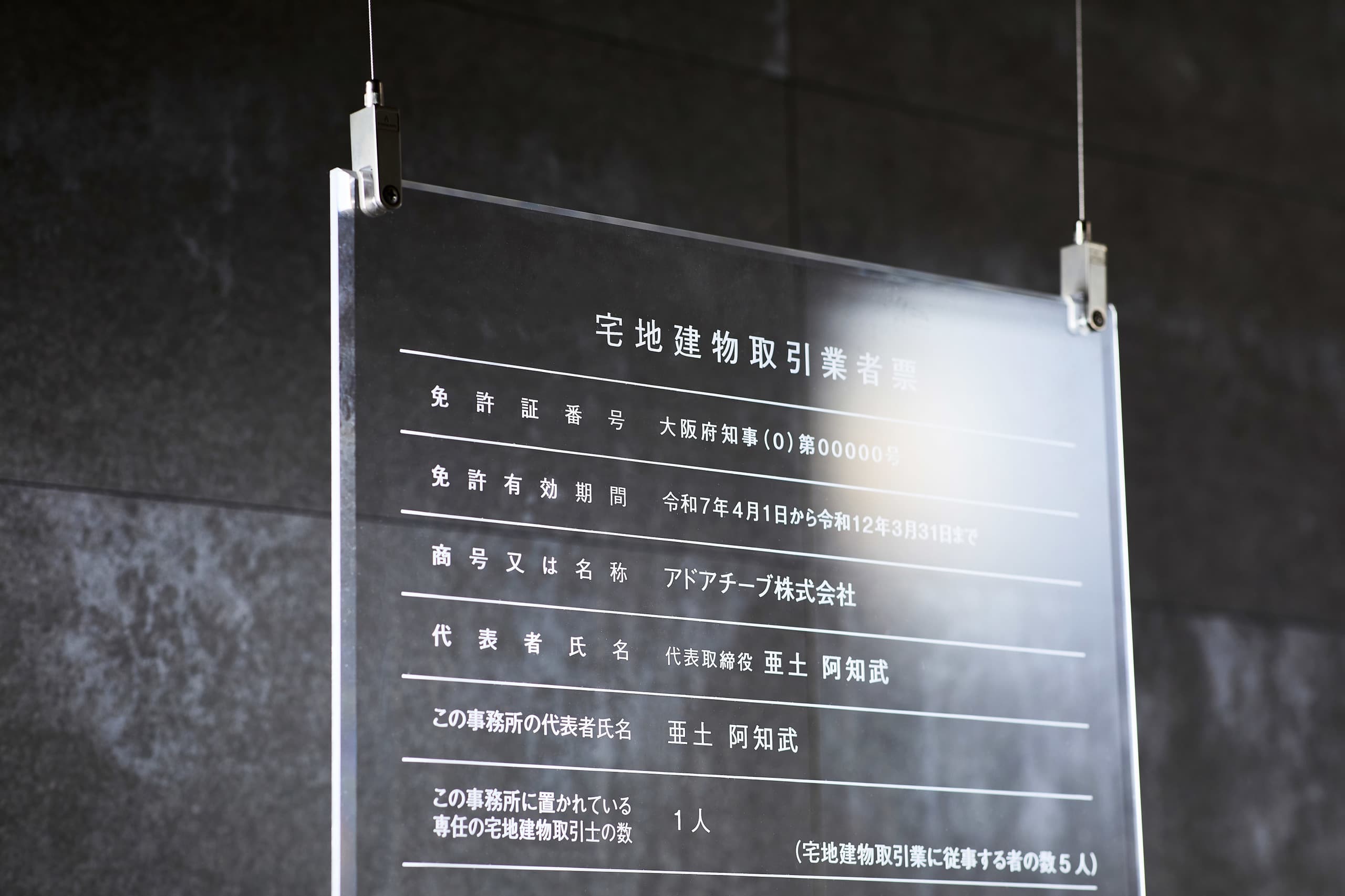 それが弊社の透明アクリル宅地建物取引業者票です!